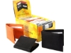 Assorted cowhide bi-fold and tri-fold wallets. This is a mixed colors dozen pack. The box containing the dozen wallets converts into a counter display.