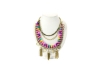 Colorful wooden beads are intertwined with thick links chain in gold tone brass. Two smaller chains add little more charm to this necklace. Tussels & heart shape hangings in gold tone brass completes this beautiful neck piece.