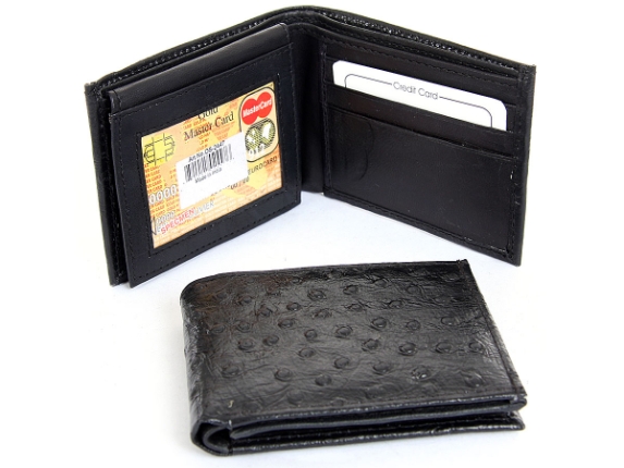 Ostrich embossed genuine leather bi-fold men wallet