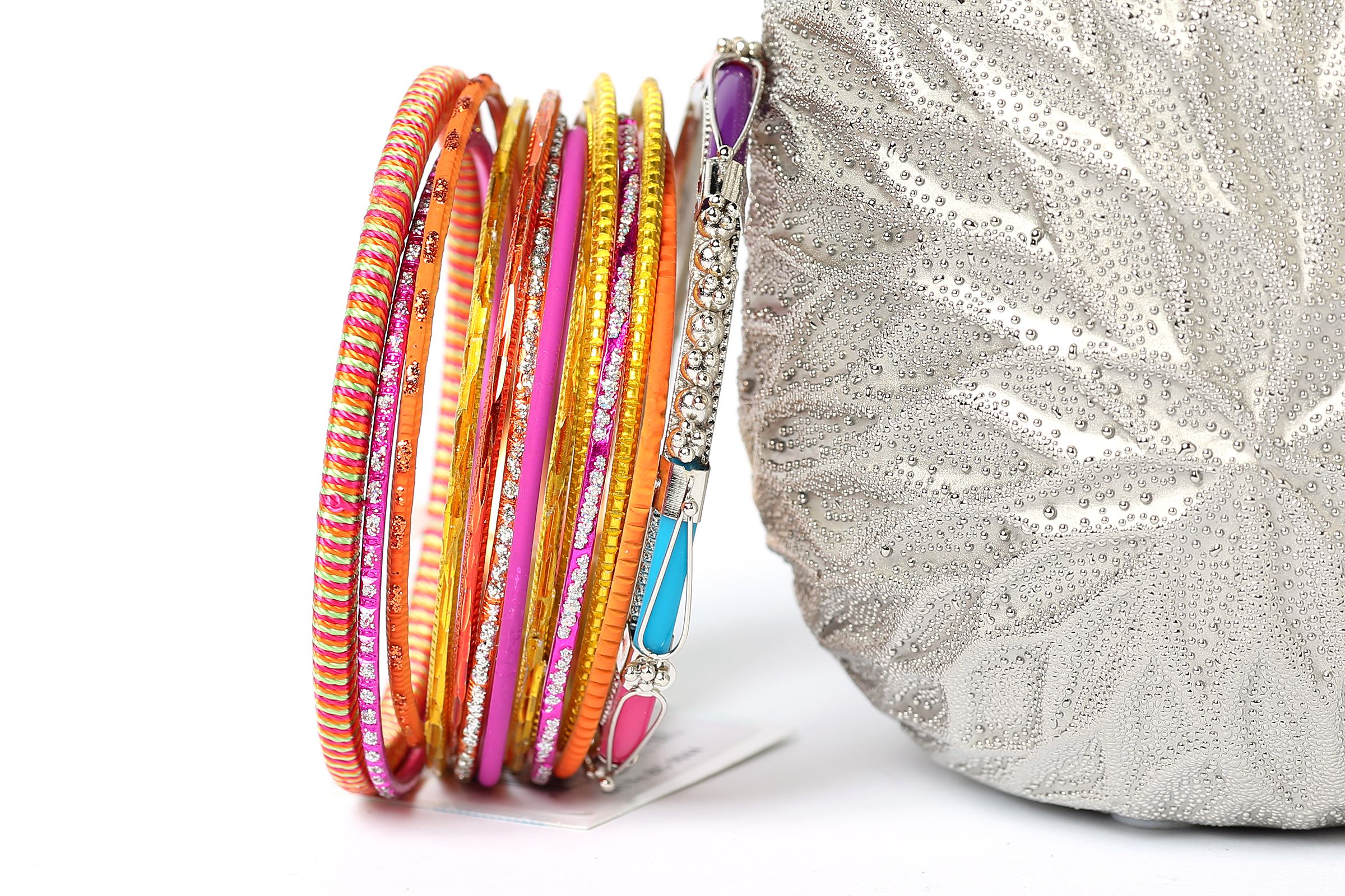 Bohemian fashion 13 piece set of bangle bracelets. Handcrafted by expert artisans in India. Durable and high quality bangle set.