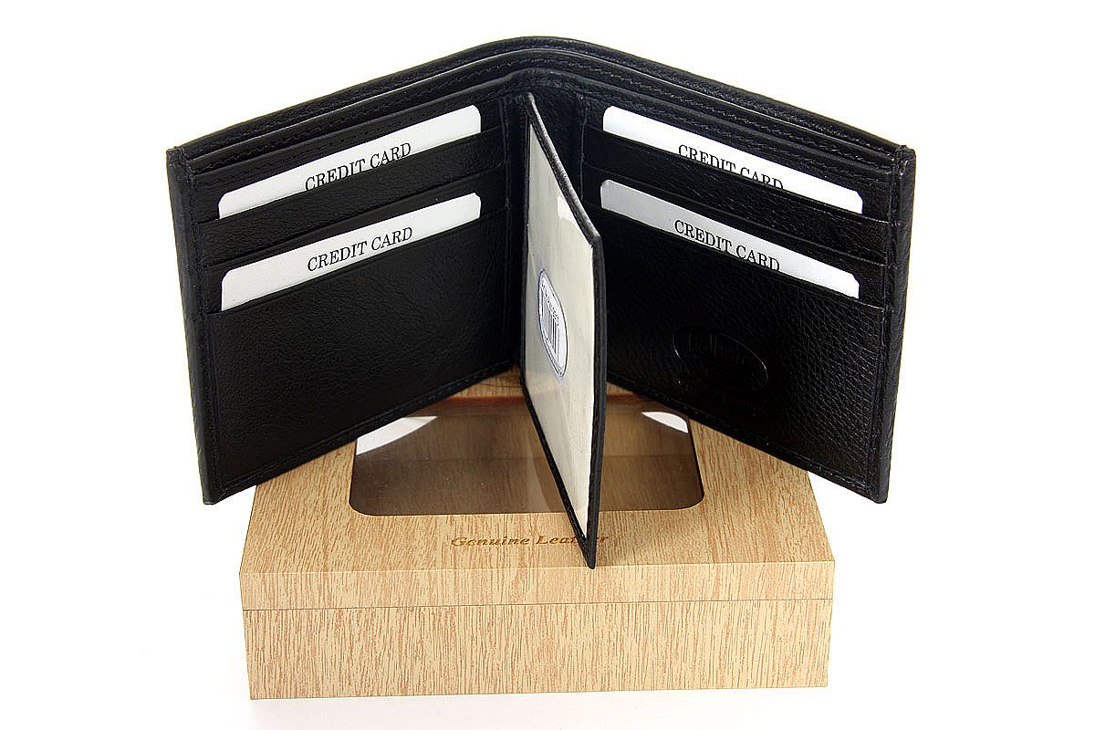 Genuine leather bi-fold men wallet. The wallet is made of high quality cow hide and comes with gift box.