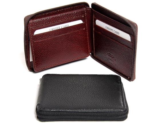 Carry your money in style. This is a genuine leather RFID Blocking bi-fold men zippered wallet with 9 credit card slots, one ID window. High quality genuine leather is durable and soft to the touch. As this is genuine leather, please be aware that there will be some small creases and nicks in the leather but the wallet are all brand new.