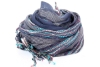 Beautiful Grey, Blue and multi colored design scarf has horizontal open weave pattern. Long twisted fringes completes this 100% viscose scarf. Classy scarf can also be teamed up with a formal dress as a shawl. Imported.