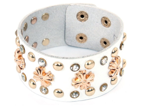 Studded Wide Cuff Leather Fashion Bracelet #SL313-WT