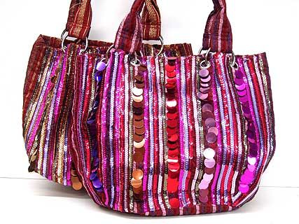 Multi Colored Sequins Fabric Tote Bag with double shoulder straps.