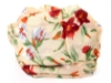 Multi colored floral print over beige colored 100% silk scarf which is square shaped. Made in India.