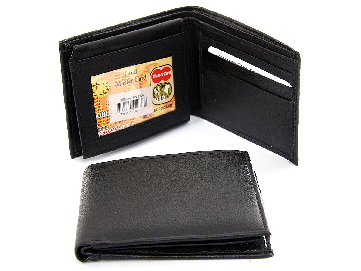 Carry your money in style. This is a faux leather bi-fold men wallet with 6 credit card slots and 2 ID Windows. As this is genuine leather, please be aware that there will be some small creases and nicks in the leather but the wallet are all brand new.