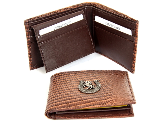 Embossed Genuine leather wallet with horse shoe Concho.
