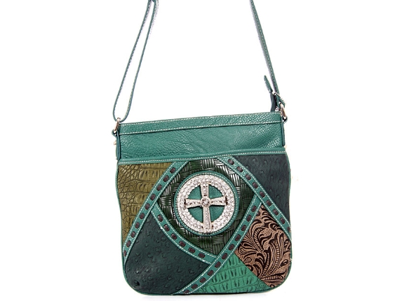 Patch-work Cross Messenger Bag.Top zipper closing. Back zipper pocket.