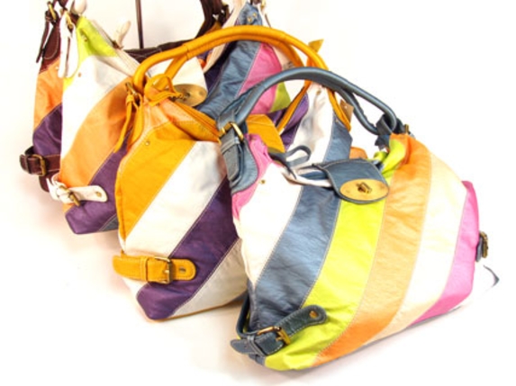Trendy Hobo Handbag has a single double strap, a twist lock closure and a metallic multi color stripes pattern. Made of faux leather.