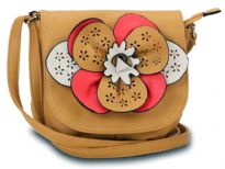 Small Crossbody Bag with Floral Detail in Yellow Faux Leather Crossbody Small B....