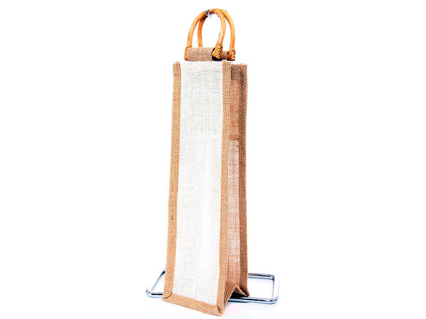 Wine Bottle Jute Gift Bag with wooden handle.