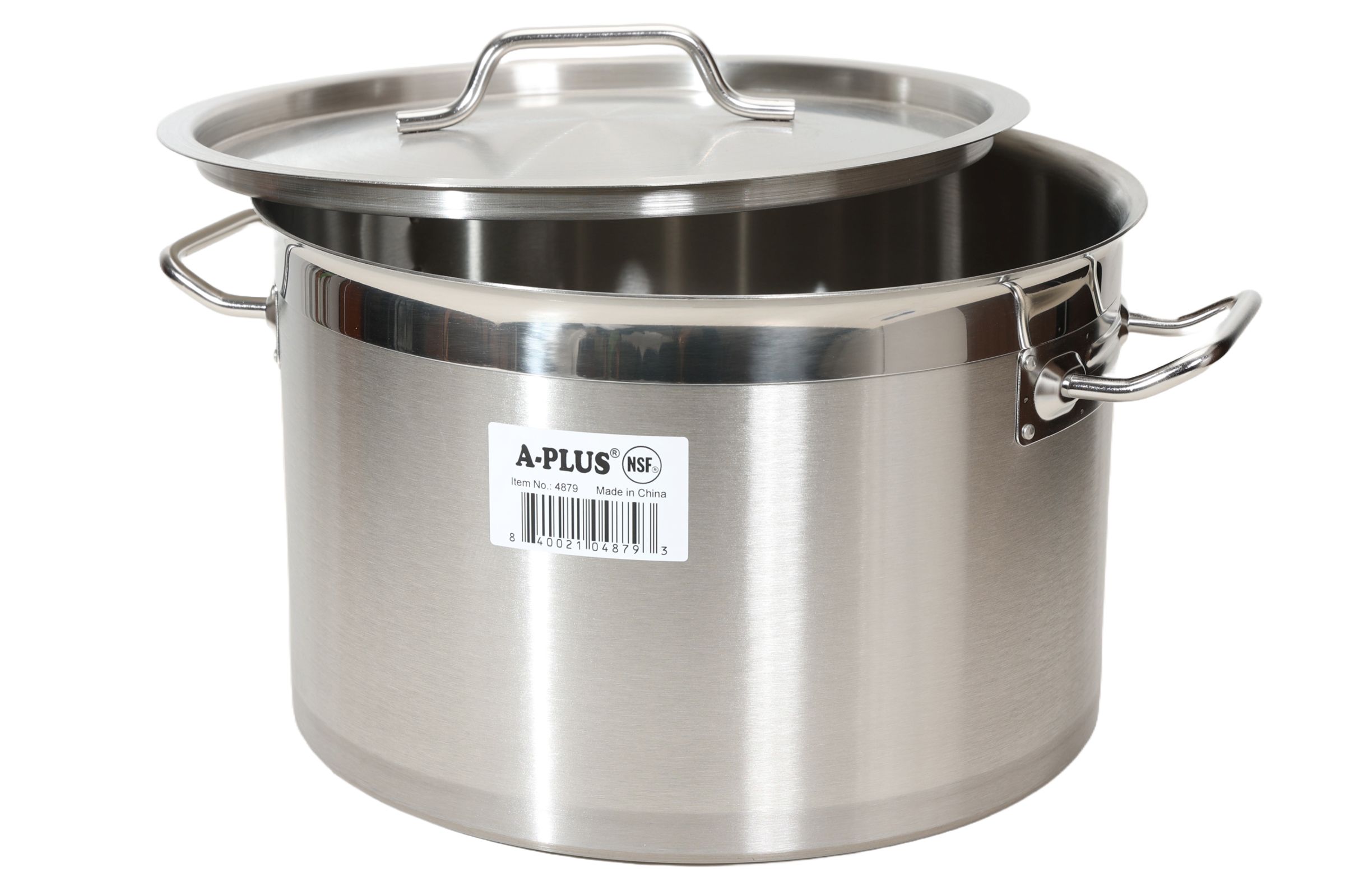 18/10 Stainless Steel Short Style Stock Pot Curved Lip with Lid. 2.5 MM Extra Heavy Bottom NSF.