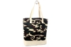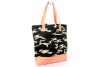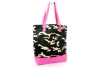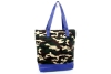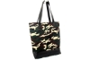 PVC Camouflage printed shopping tote. Top zipper closing.