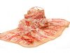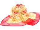 Mocha colored sheer & lightweight scarf with beautiful red print pattern in paisleys, leaves & flowers. 60% polyester and 40% silk. Imported. Hand wash.