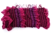 100% Acrylic Crinkled Scarf in bright magenta color with brown & purple stripes running vertically through it. Fringes at the ends of the scarf. Imported.