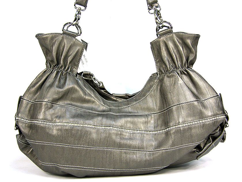 Stripped Hobo Bag In Pewter #BA-3038-PW