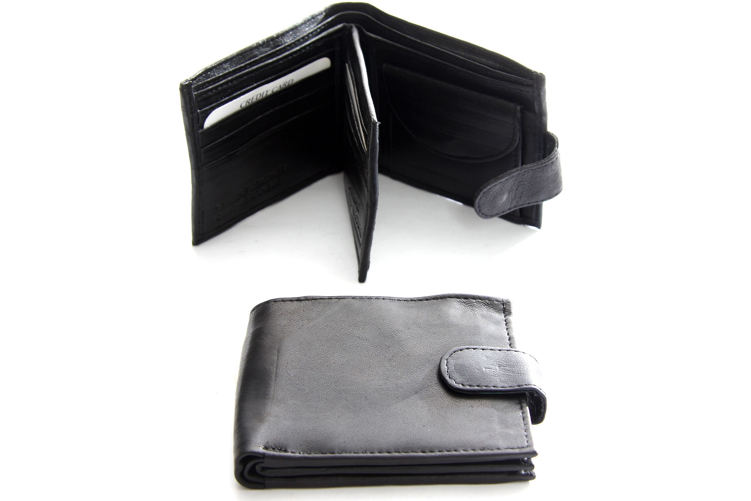 Genuine Leather Bi-fold men wallet. RFID Secure.Card Slots-12, Coin Slot-1, Bill Compartment-2, Zipper-1, Button Closure, Sheep Leather.
