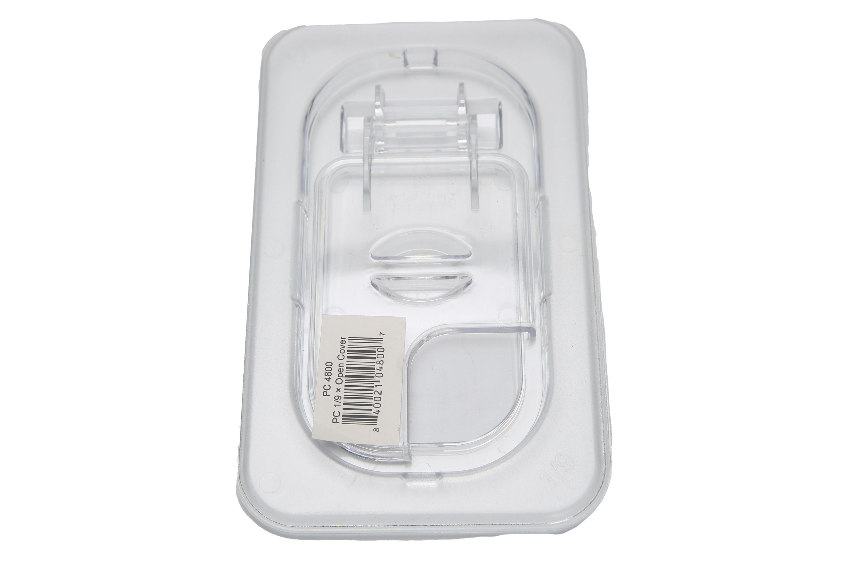 Clear Polycarbonate 1/9 size food pan open cover. NSF