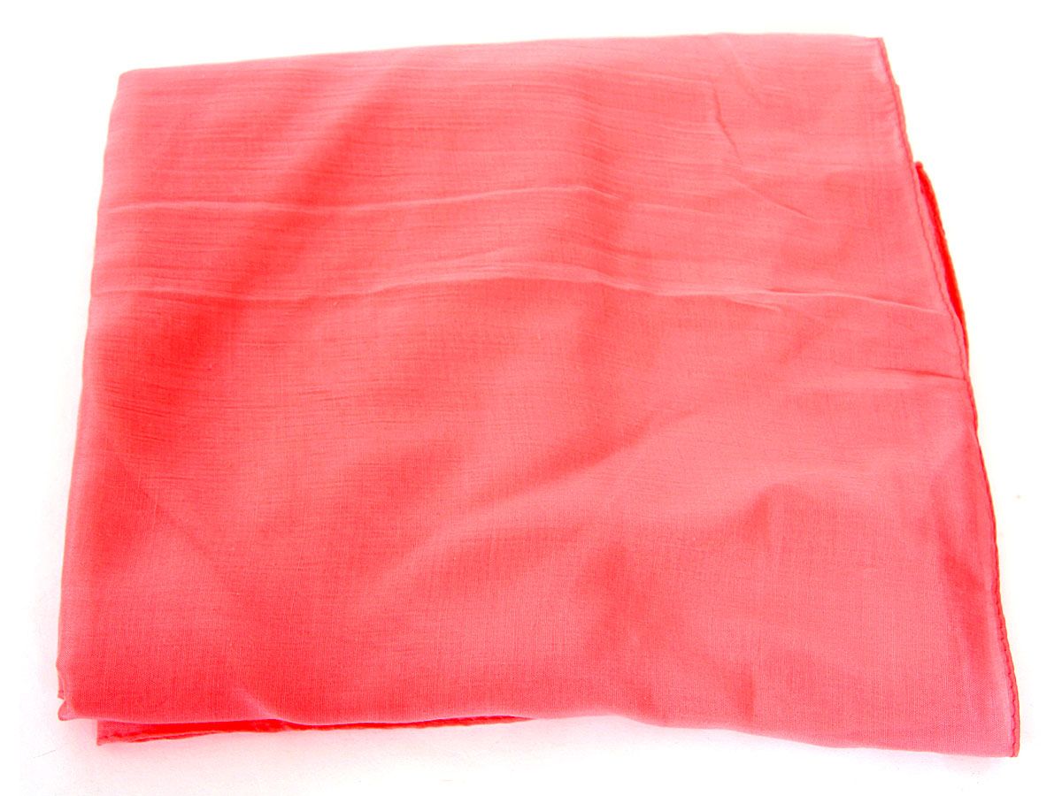100% polyester solid color scarf in Pink. Size is approximately 72x40 approximately. Hand washable. Made in India.