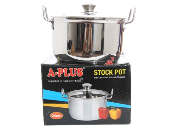 Stainless Steel Stock Pot with Capsulated Bottom & Glass Lid
