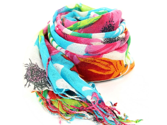 A garden of fresh flowers blooms on the fine wool weave of this vibrantly colored scarf finished with twisted long fringe at the edges. Imported. Dry clean only.