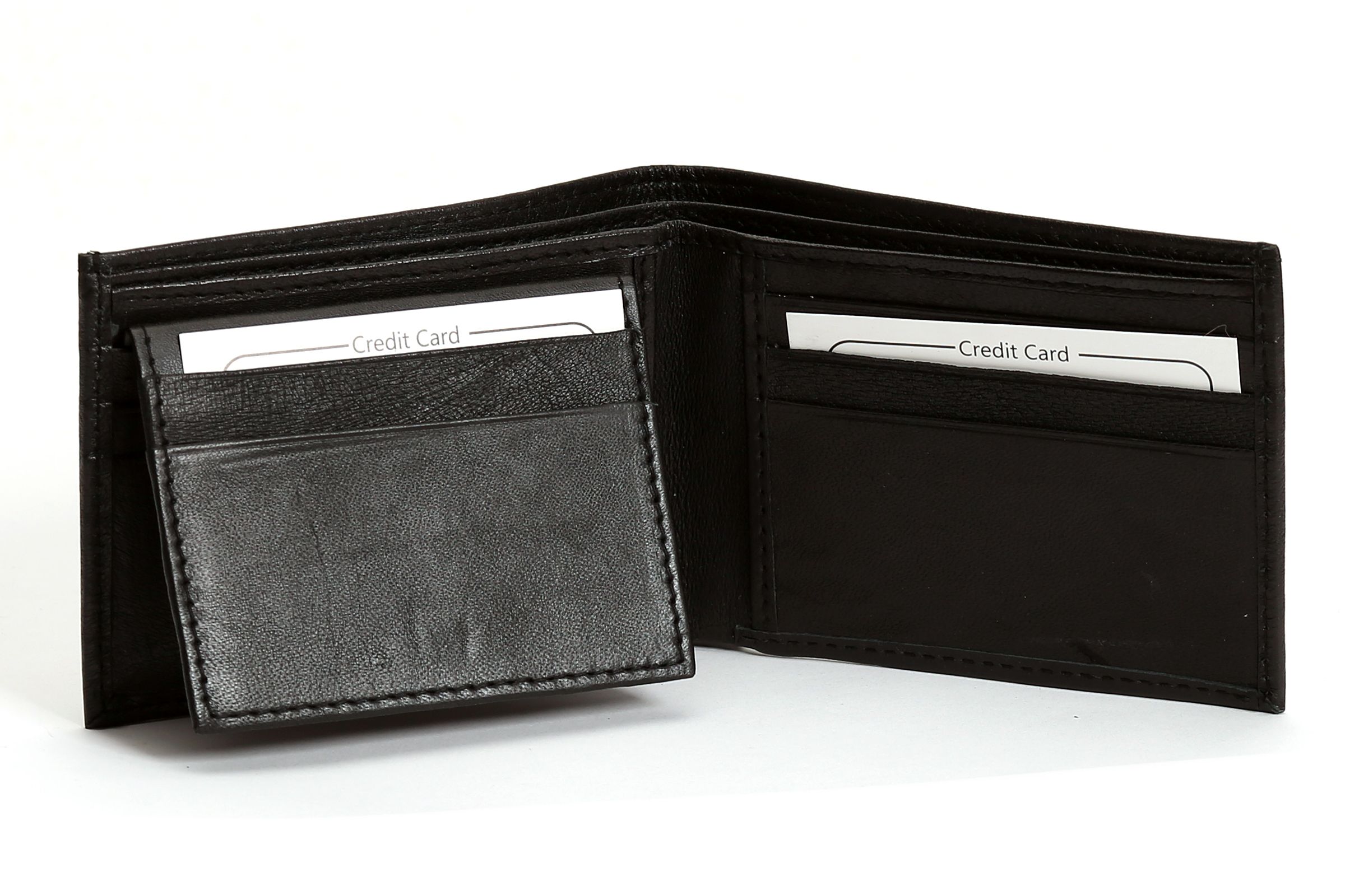Carry your money in style. This is a genuine leather bi-fold men wallet with removable flap. Wallet has 6 credit card slot. Flap has additional 2 credit card slots and 2 ID Windows. This wallet is double bill, bi-fold design. As this is genuine leather, please be aware that there will be some small creases and nicks in the leather but the wallet are all brand new.