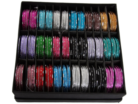 Sets of 7 pieces Aluminum Bangles, Box contains 36 sets - 18 colors 2 sets each