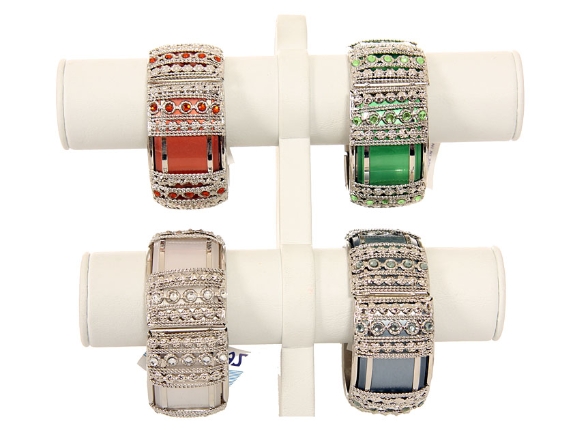 Metal Folding Bracelet, (12 PCS in Box) Silver Plastic/Metal Work. Colors: White, Pink, P.Green, Brown, Grey, Turquoise - 2 PCS each