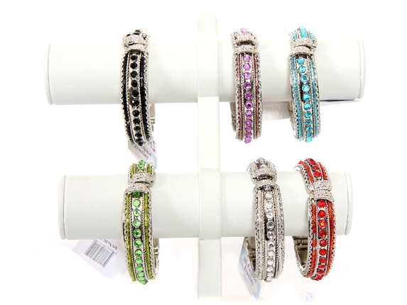 Folding Metal Bracelet with 12 PCS in Box, Silver Plating with Round Kundan work. Colors: Black, Turquoise, Crystal, Green, Red, Purple, Red - 2 pieces each color in a box
