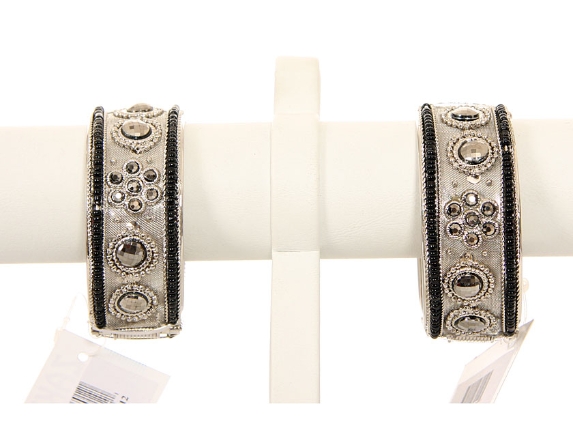 Metal Folding Bracelets Size: 1" Broad,(12 Pcs In Box), Silver Plating, Glass Beads Kundan Work Black Beads/hemetite Kundan #BR-6563
