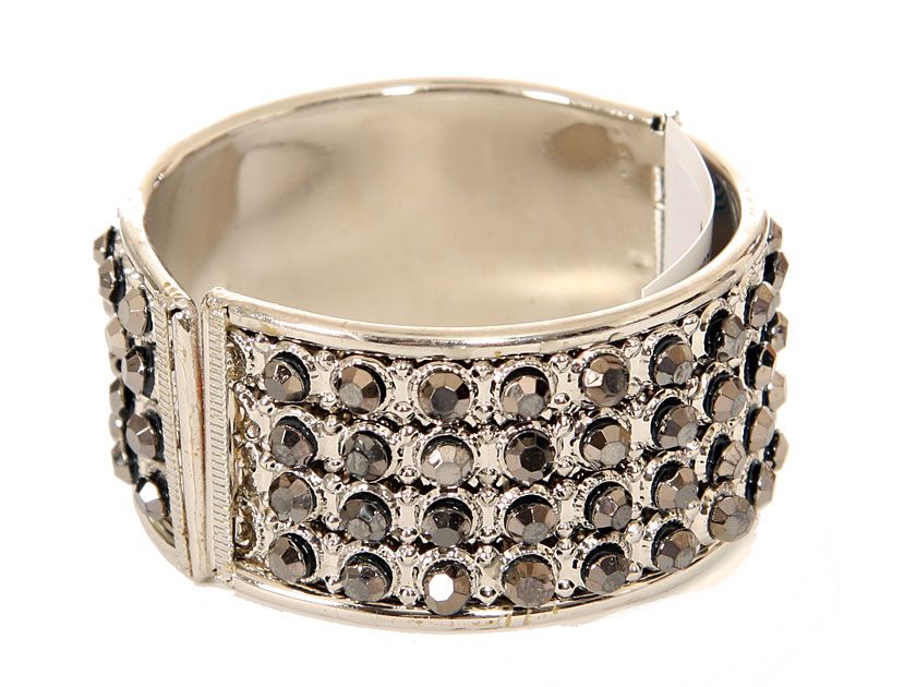Metal Folding Bracelets With Silver Colored Kundan Work. 12 Similar Pieces In A Box. Imported. #BR-6785-S