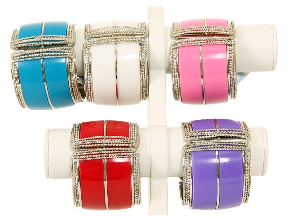 Metal Folding Bracelet Size: 2" Broad, (6 PCS in BOX) Color: White, Black, Purple, Pink, Red, Turquoise