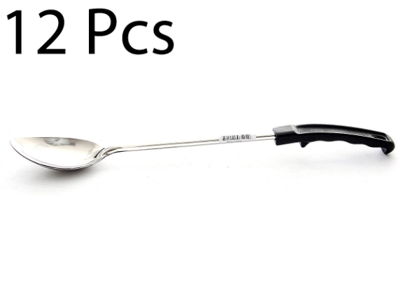 Basting Spoon with Plastic Handle, is a necessary item for any kitchen. Due to its 18-8 stainless steel construction, the handle is extremely durable. The basting spoon has a holed end for hanging.