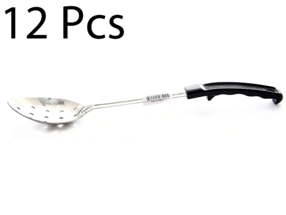 Basting Spoon with Plastic Handle, is a necessary item for any kitchen. Due to its 18-8 stainless steel construction, the handle is extremely durable. The basting spoon has a holed end for hanging.