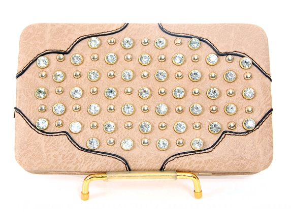 Faux Leather Rhinestones studded Metal frame clutch wallet.