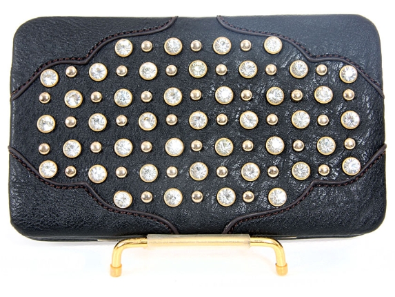 Faux Leather Rhinestones studded metal frame clutch wallet