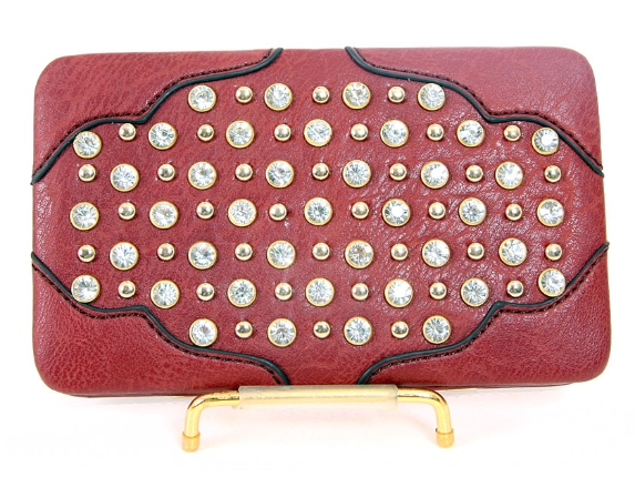 Faux Leather Rhinestones studded metal frame clutch wallet