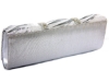 Satin Evening bag Embellished with two Rhinestones strips. Magnetic snap button closing. Metal shoulder chain included.