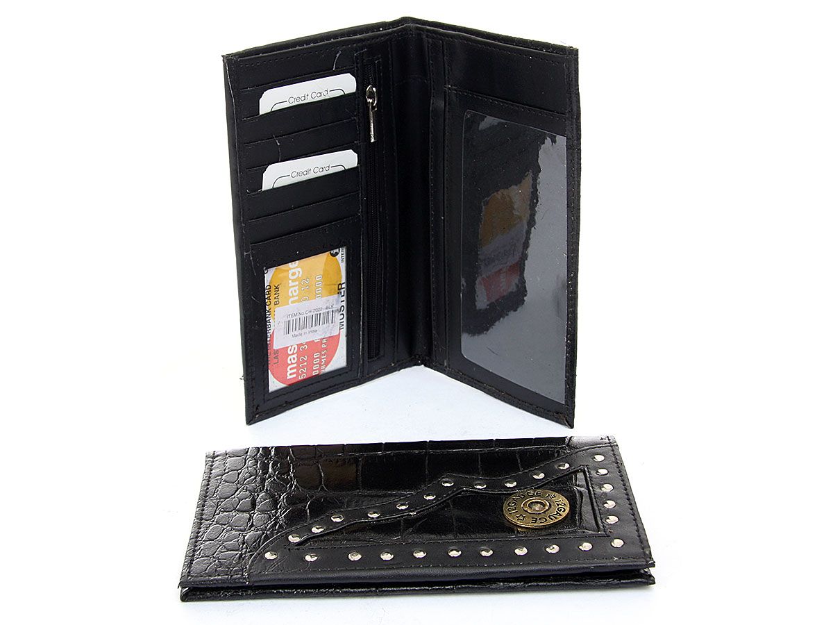 Crocodile embossed genuine leather bullet concho check book wallet with zipper pocket