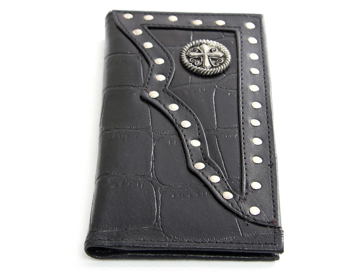 Crocodile embossed genuine leather Cross Concho check book wallet