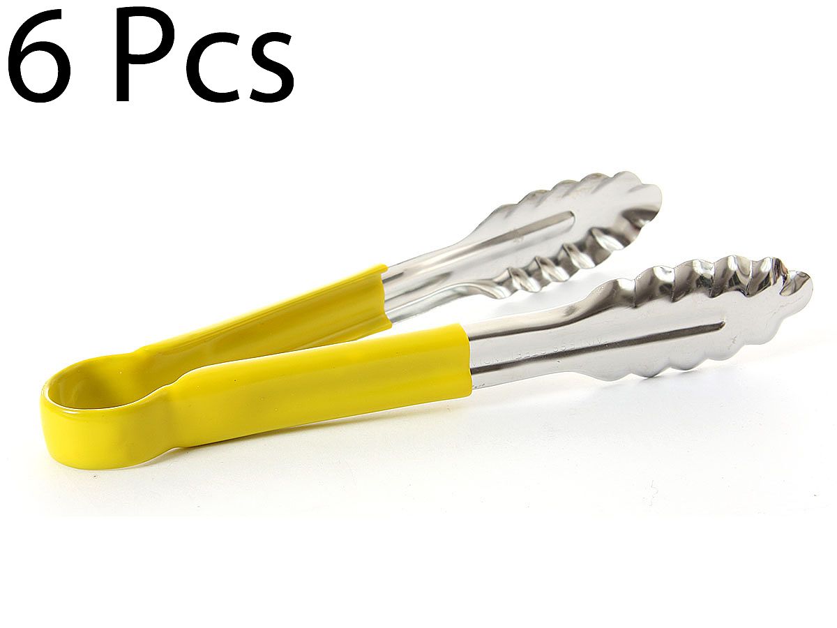 This 9 inches scalloped utility tongs features 20 gauge stainless steel construction and color-coded handle. The springless design means there are no moving parts to break and no joints to gather bacteria, and the handle resists temperatures up to 180° F. Color coded utility tongs help reduce risk of food borne illness resulting from cross-contamination. Color-coded handles provide easy identification for controlled food contact.