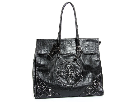 Tote Bag With Croc Patter In Black #F-318-BK
