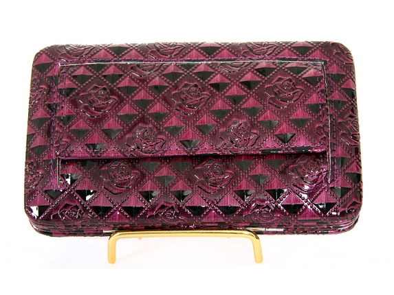 Rose Flower Embossed Snap Button Clutch Wallet With Front Pocket #F1200FL-PPL