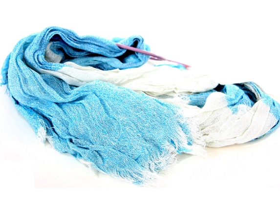 Crinkled Two Tone Woven Polyester Scarf with eyelash fringes all around it. Soft and lightweight to use & comes on a small round hanger. Imported. 100% polyester.