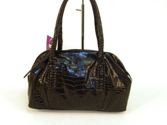 Trendy Croco embossed handbag has a double handle and a zipper closure. Made of PU (polyurethane).
