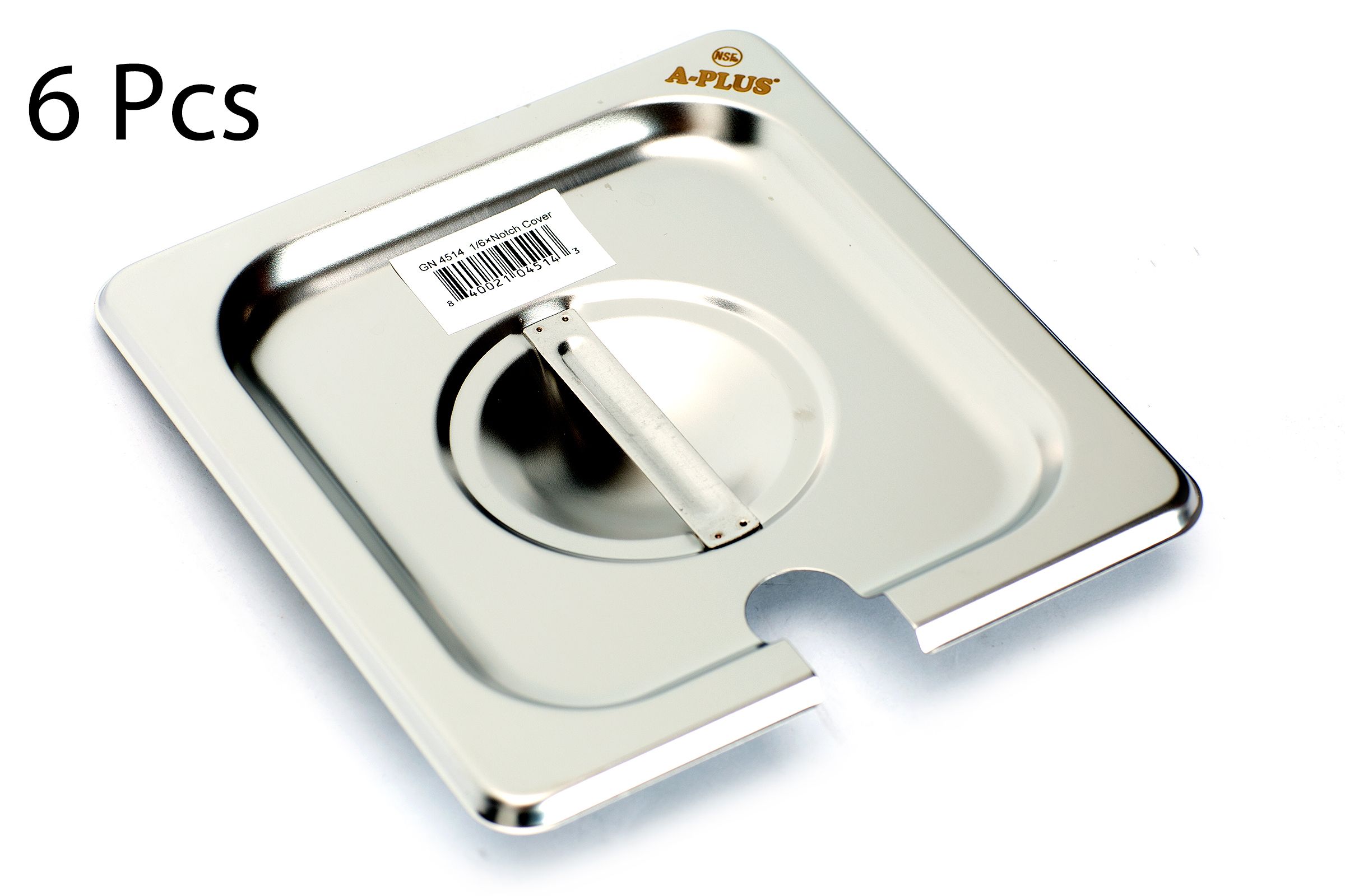 [6 Pack] 1/6 Size 25 Gauge Nsf Steam Table Pan Cover With Notch #GN-4514-6PK
