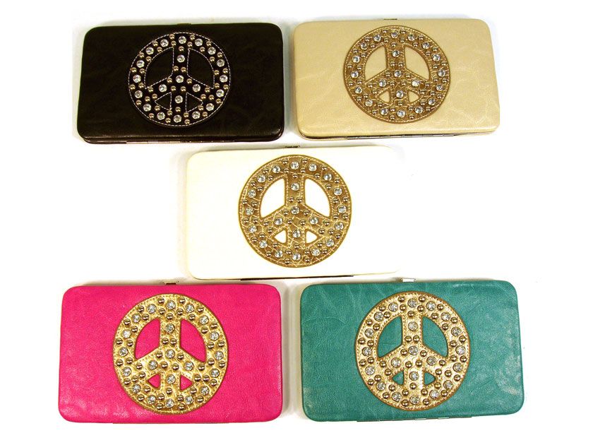 Rhinestones Studded Peace sign clutch wallet