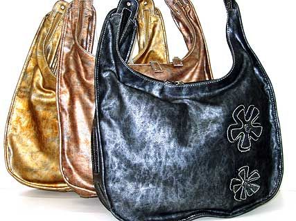 Trendy Two Tone Shoulder bag has a metallic texture, a top zipper closure, a single handle and floral details. Made of faux leather.