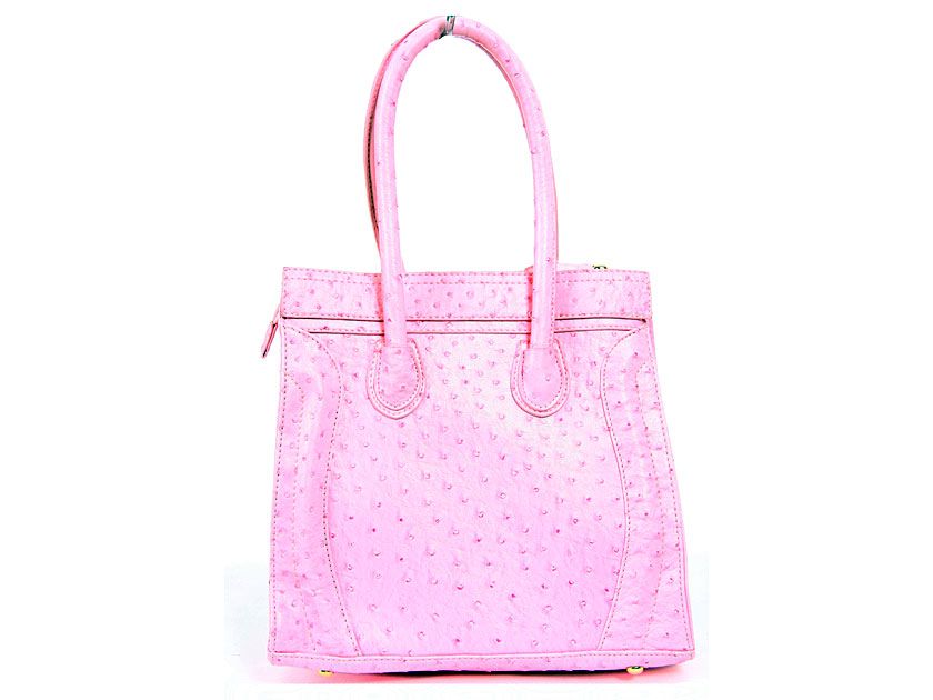 Ostrich embossed PVC fashion Handbag. Top zipper closing. Back zipper pocket. Adjustable shoulder strap included